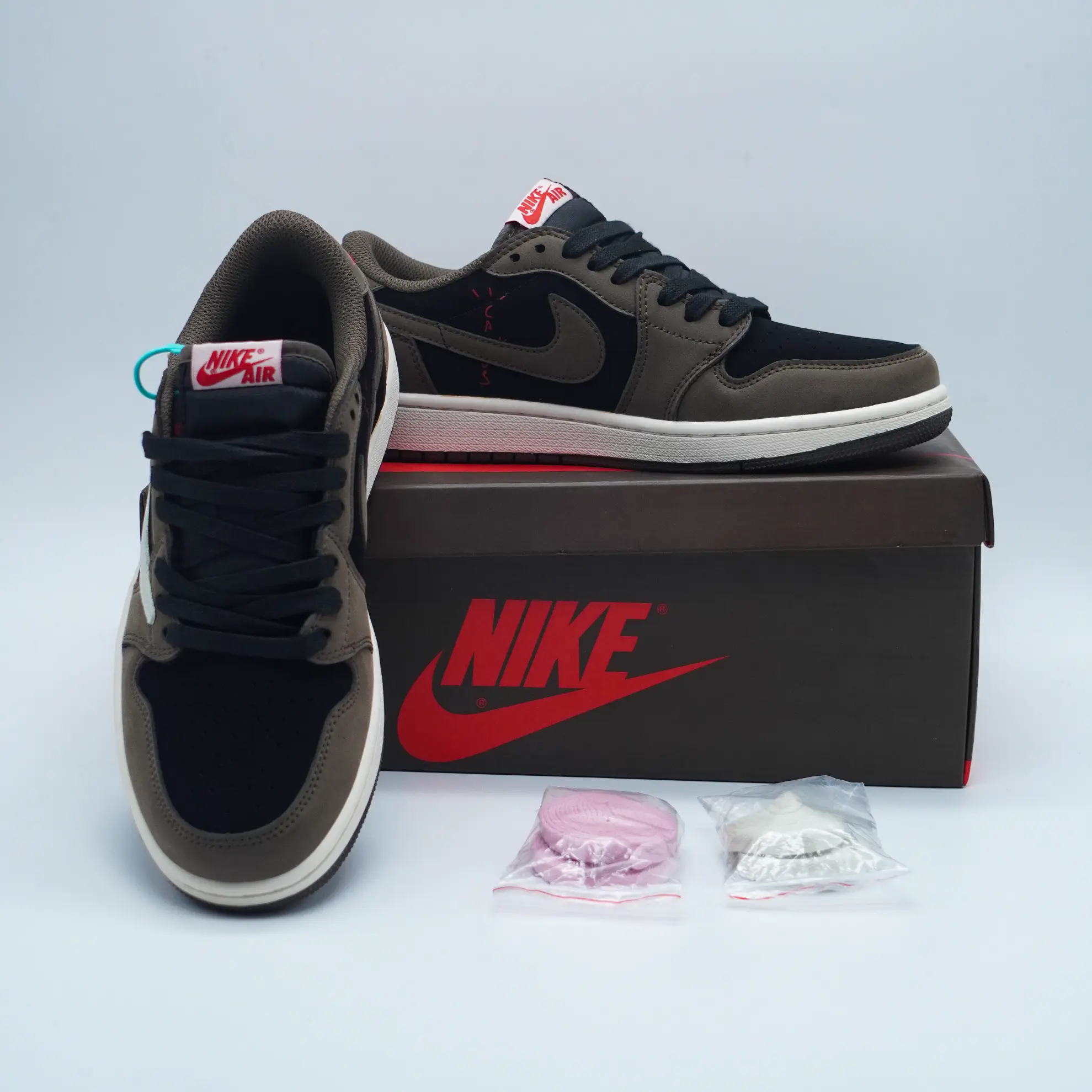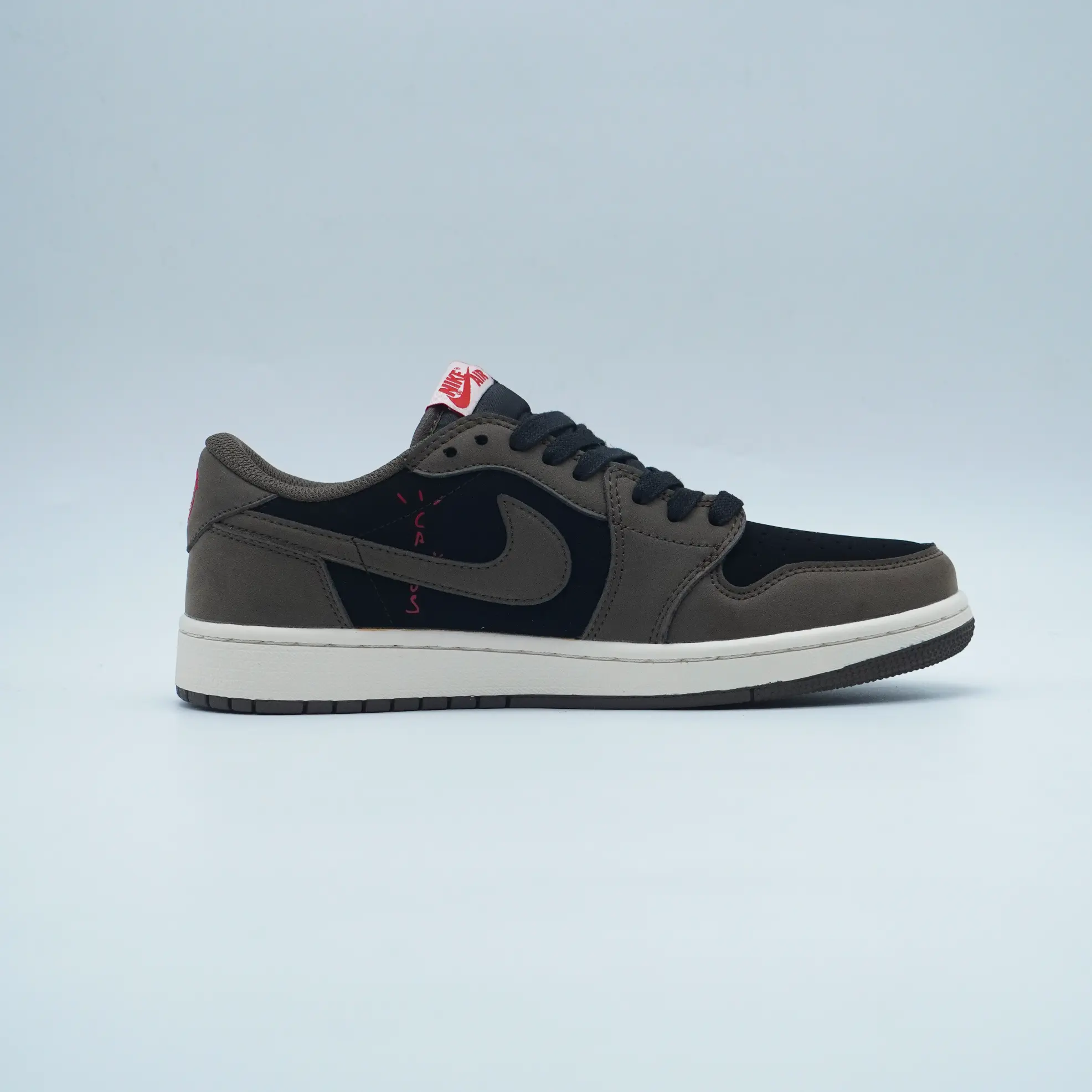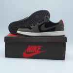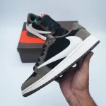 The Travis Scott x Air Jordan 1 Low “Mocha” is one of the most coveted collaborations between the Houston rapper and Jordan Brand, first released in 2019. It seamlessly blends Travis Scott’s signature aesthetic with the timeless Air Jordan 1 silhouette, resulting in a sneaker that is both stylish and versatile. The “Mocha” colorway features a luxurious dark mocha nubuck base, accented with black suede overlays and sail leather panels, creating a balanced earthy palette that is subtle yet eye-catching. A defining characteristic of this collaboration is the reverse Swoosh on the lateral side, a design element that has become a signature of Travis Scott’s Jordan releases, giving the sneaker an instantly recognizable identity.
