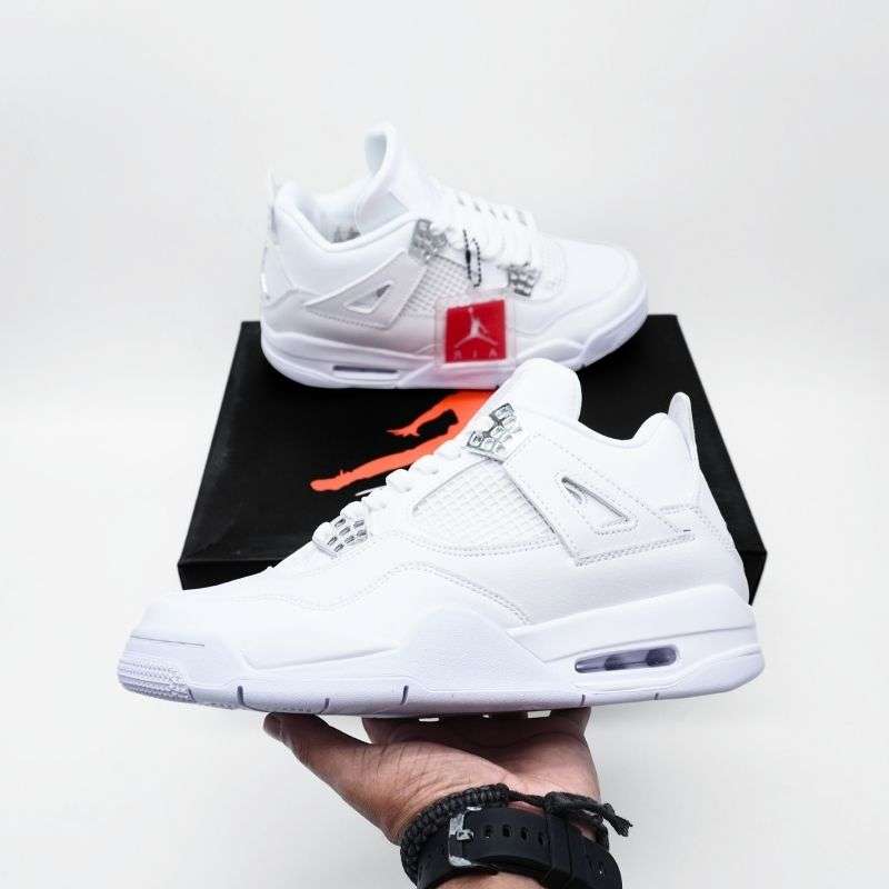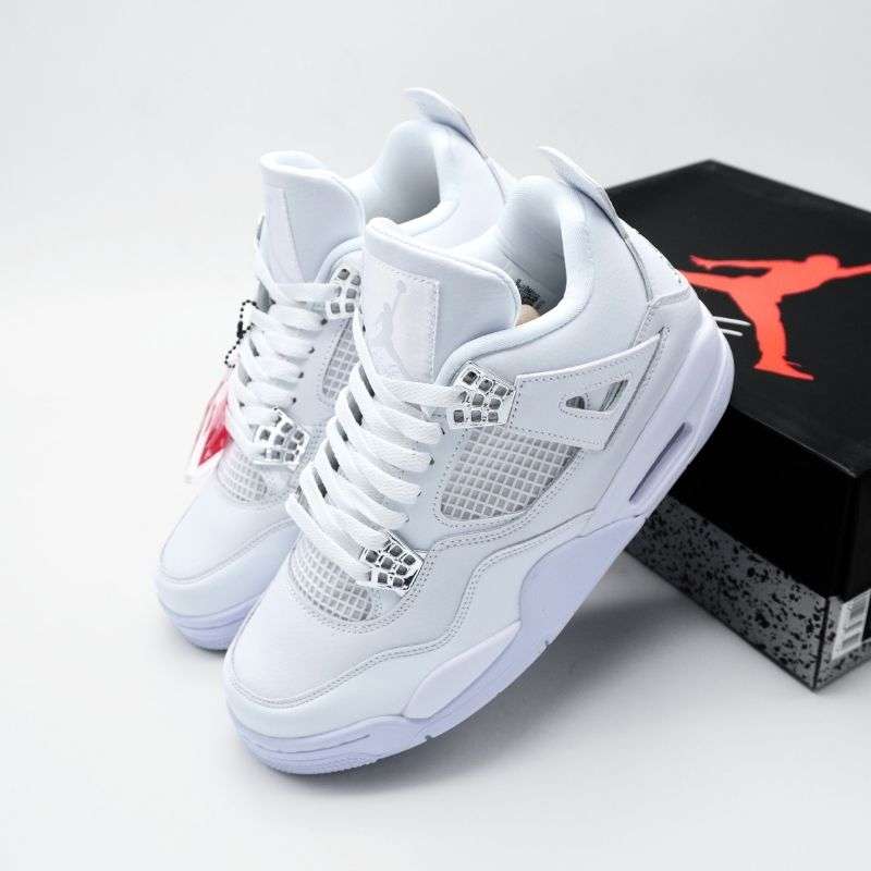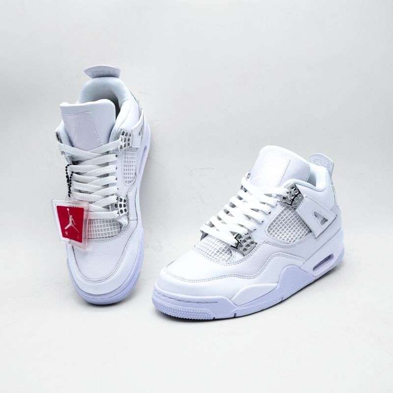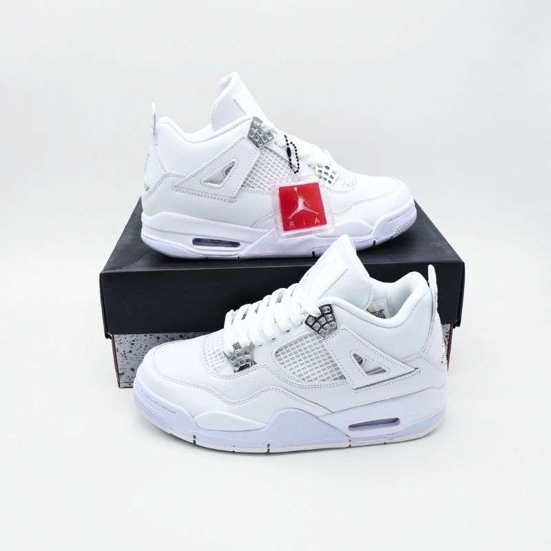 The Nike Air Jordan 4 Retro Pure Money stands as one of the cleanest and most timeless releases in the Jordan lineup. This sneaker is a celebration of minimalist design and premium craftsmanship, blending iconic basketball heritage with everyday street-style appeal. It features an all-white leather upper that highlights the brand’s commitment to quality and attention to detail. The simplicity of the colorway allows the intricate design elements of the Jordan 4 to stand out—like the signature mesh panels, molded eyelets, and supportive wings. The metallic chrome accents on the heel and lace tabs add a luxurious touch, giving the sneaker a refined and upscale feel.