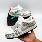 Virgil Abloh pays homage to skate culture’s adoption of 1980’s Nike Basketball silhouettes with the Nike Dunk Low Off-White. When Nike unveiled the Dunk as the centerpiece of their Nike College Color’s program in 1985, seven different colleges were represented in the first colorways offered, with Michigan was one of the first schools.